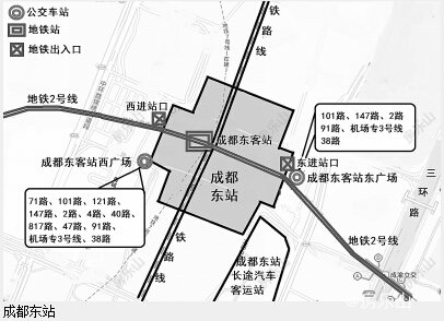 成都东站:地铁2号线直达春熙路去熊猫基地38路换乘87路
