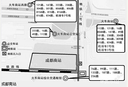 ■下了成都南站,可换乘49路去春熙路、川大;换乘地铁1号线去天府广场、海洋公园